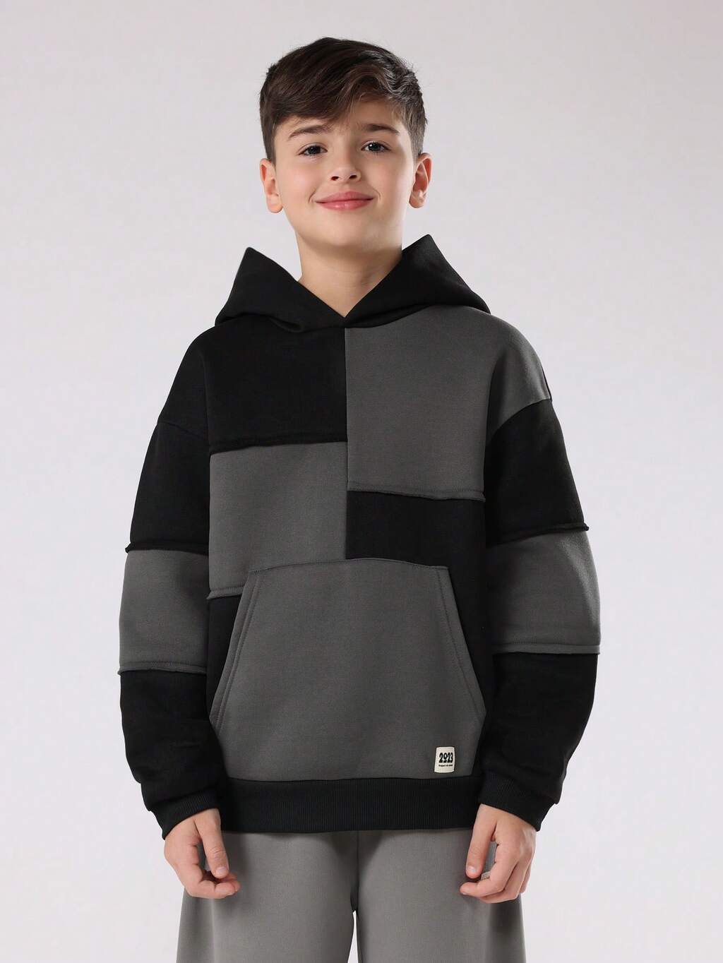 센터 포켓과 대비 패널이 있는 컬러 블록 후드 티셔츠