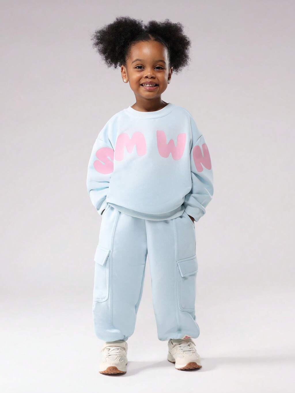 핑크색 텍스트가 들어간 오버사이즈 스웨트셔츠와 조거 세트