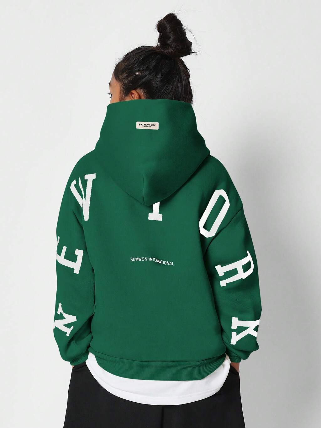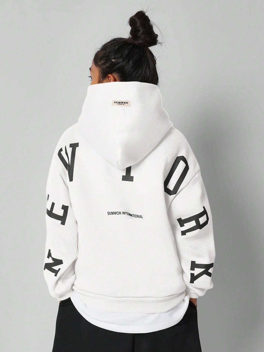레트로 스타일 스테이트먼트 그래픽 백 프린트 후드 티셔츠