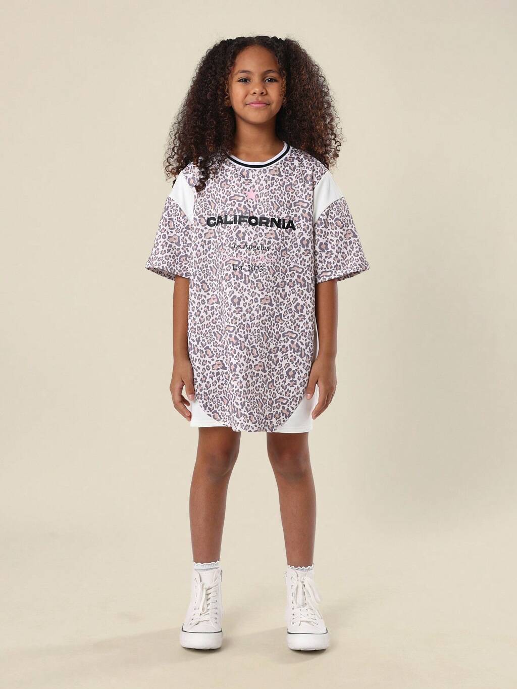 레오파드 프린트 오버사이즈 캐주얼 하이로우 트윈 걸즈 티셔츠