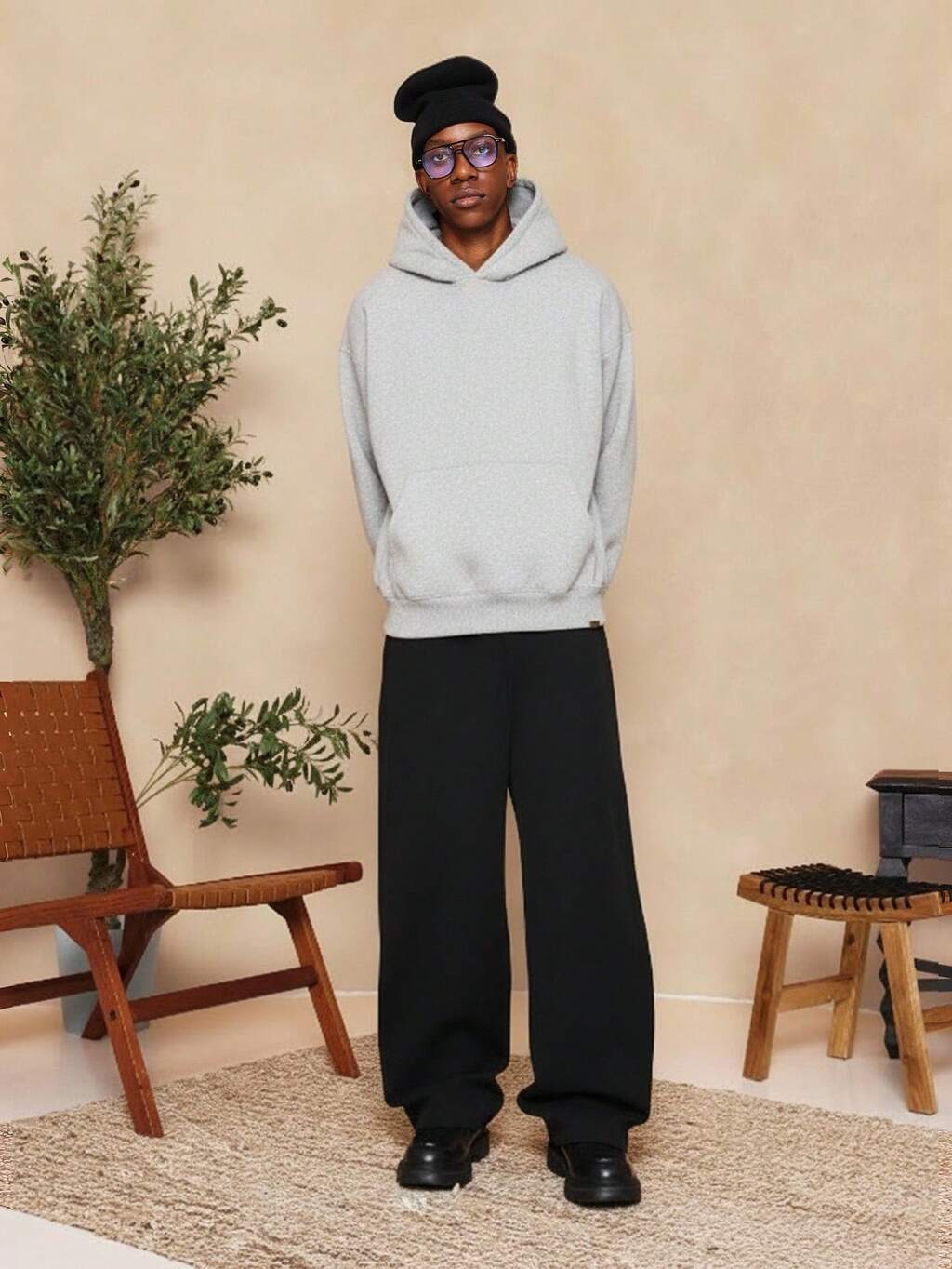 오버사이즈 클래식 풀오버 드로스트링 후드 티셔츠
