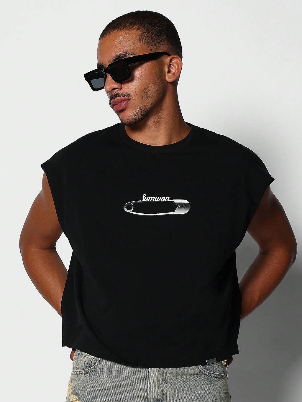 Crop Fit Tank Top With Pin Graphic Print