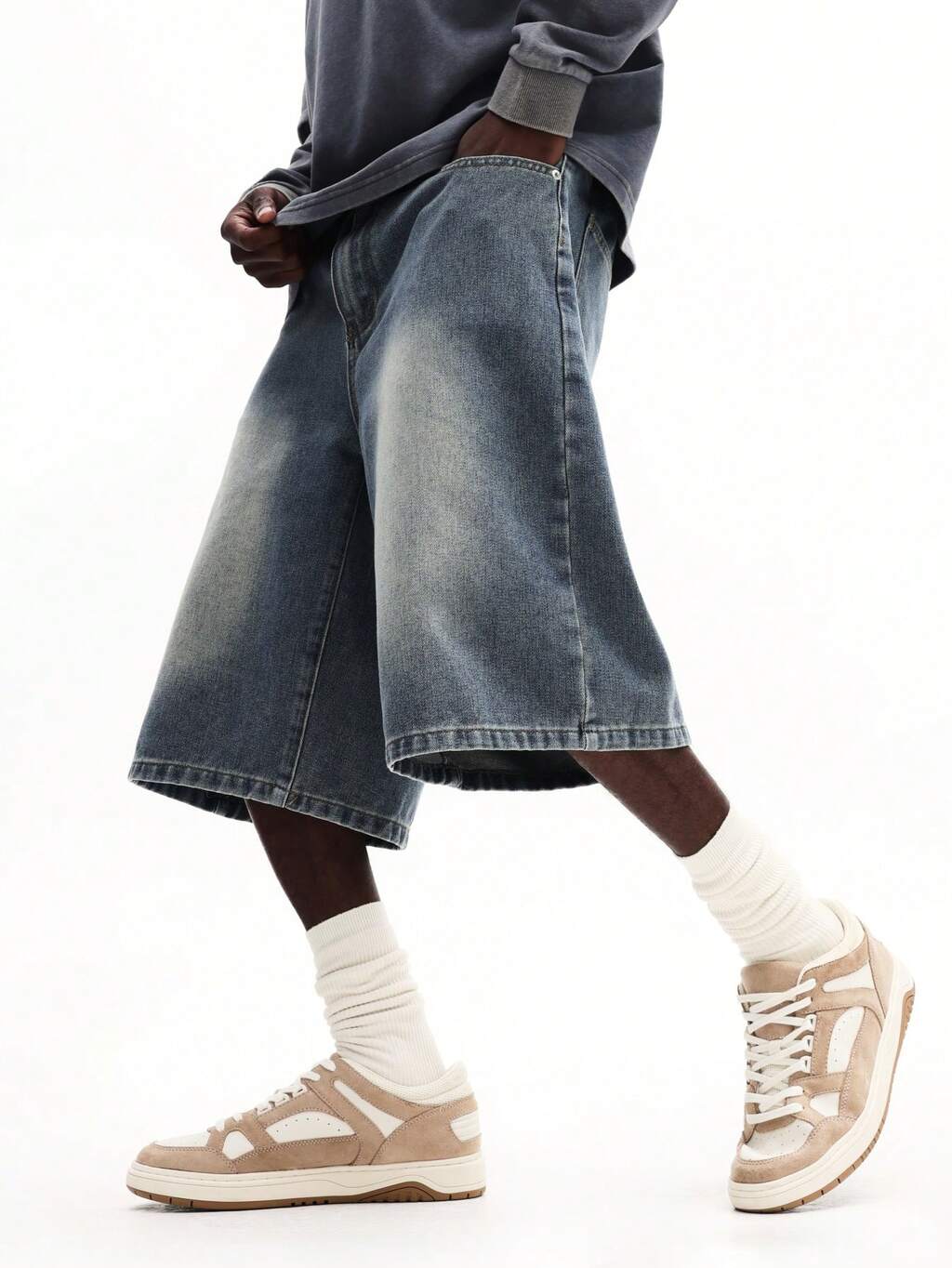 Wide Leg Baggy Denim Shorts With Vintage Wash