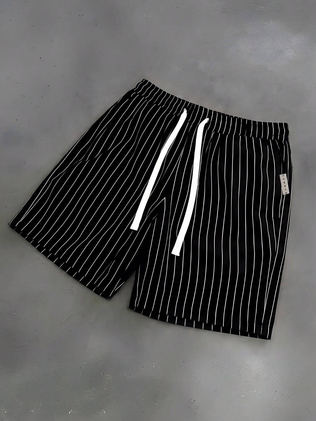 Vertical Pinstripe Shorts With Drawstring