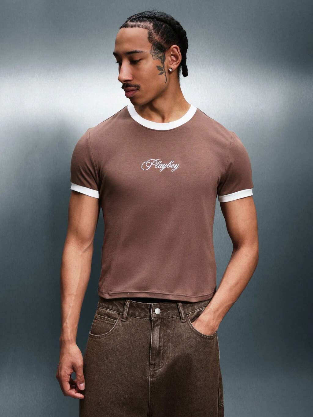 PLAYBOY X SUMWON Script Print Crew Neck Ringer Tee