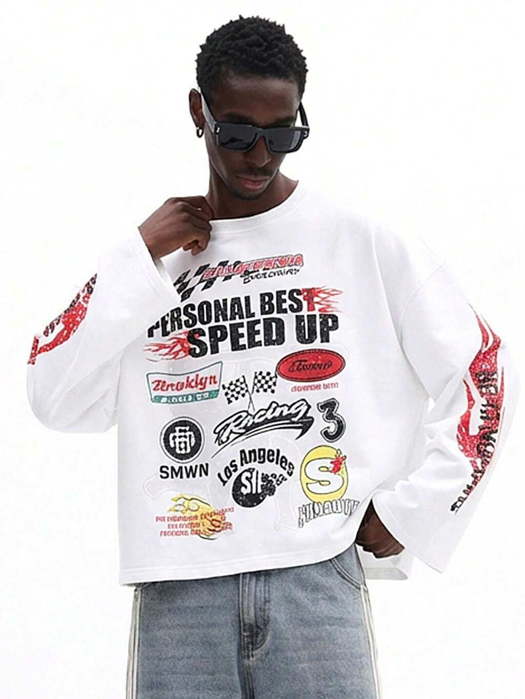 Long Sleeve Racing Graphic Tee With Flames