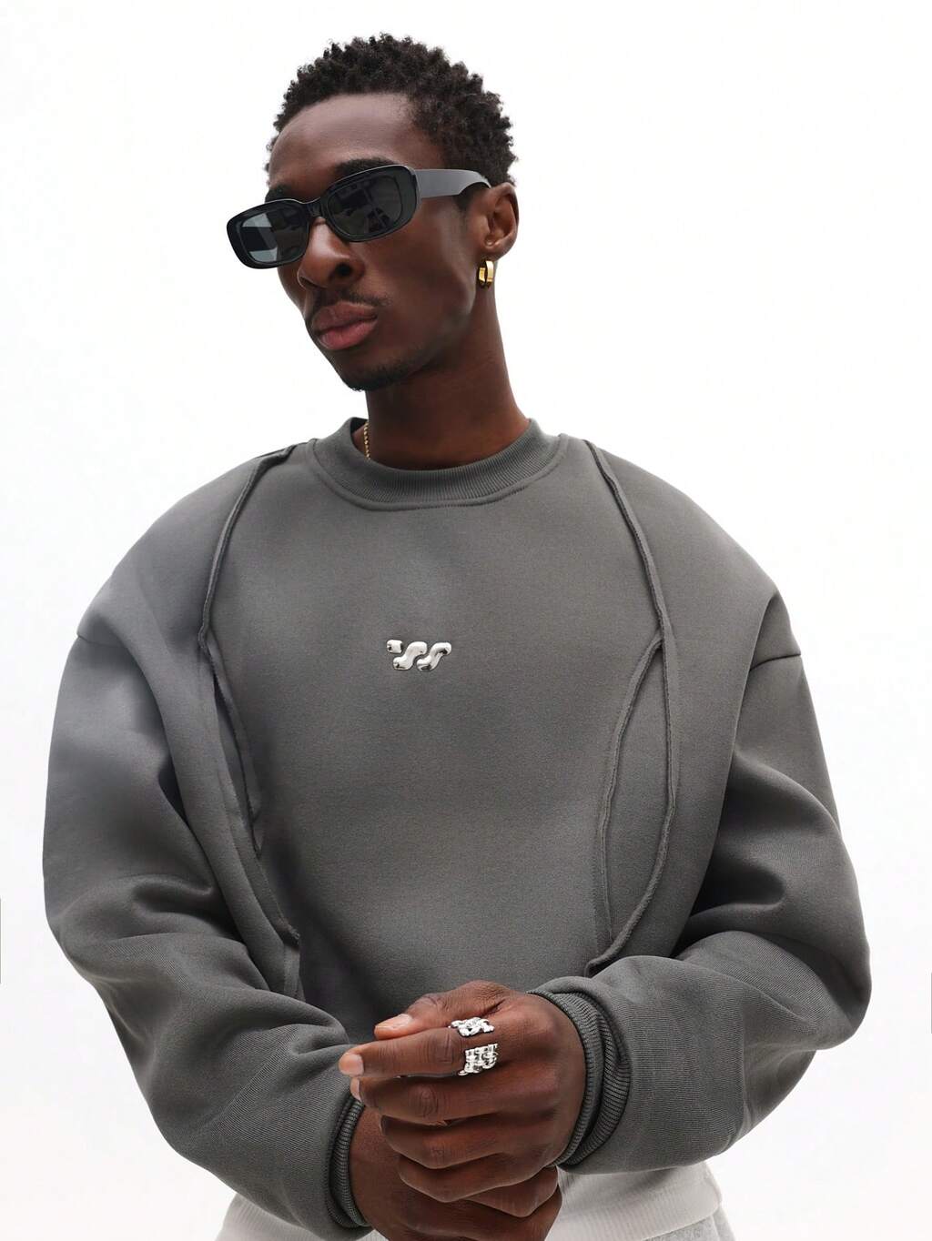Oversized Seamed Sweatshirt With Logo Detail