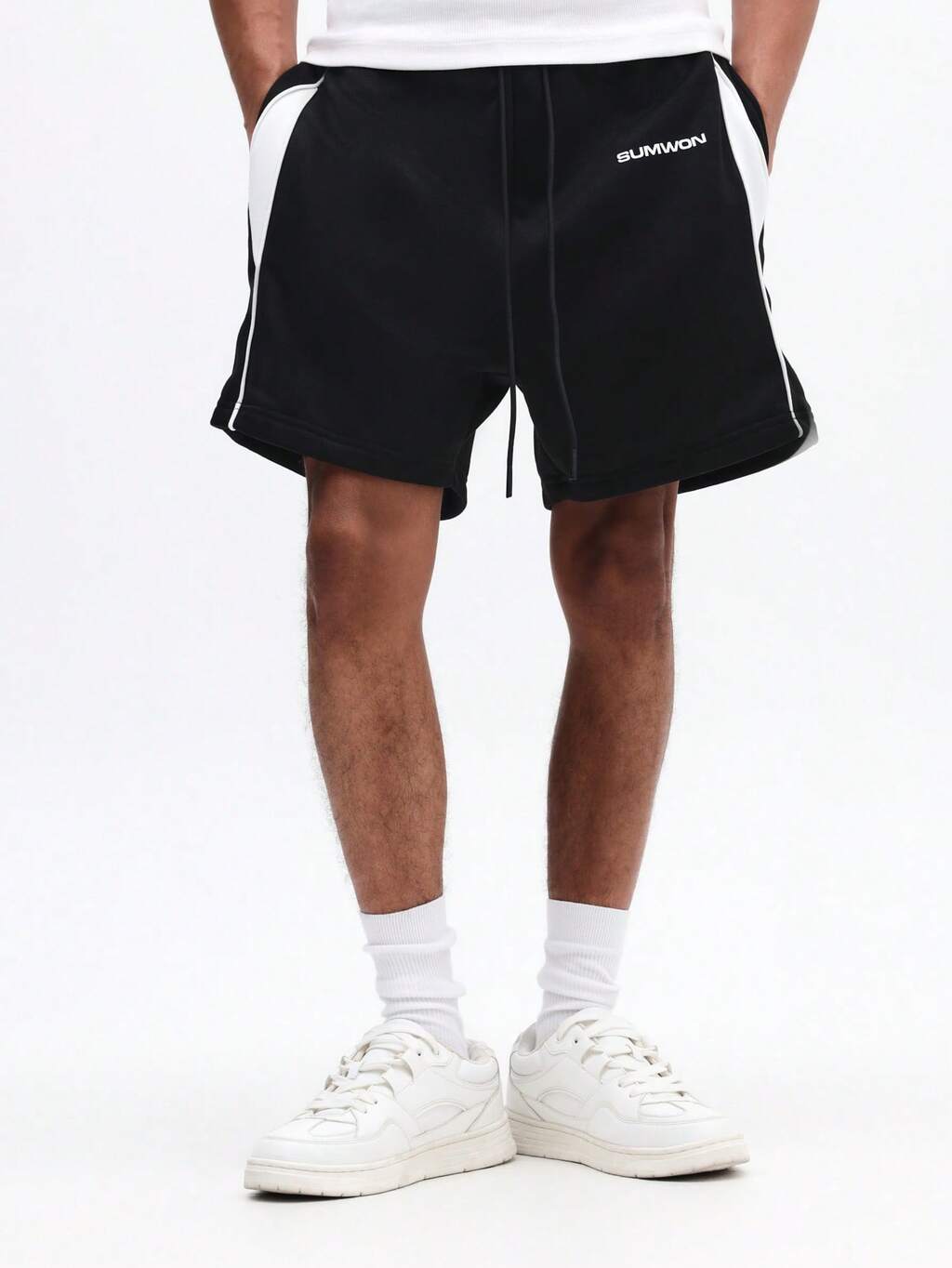 Men Color Block Piping Casual Summer Drawstring Shorts With Side Panel Contrast Detailing