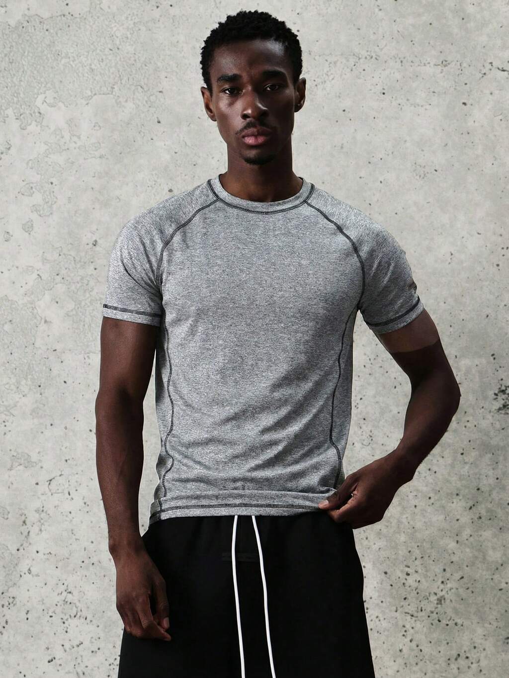 Heather Grey Crew Neck Tee With Contrast Stitching