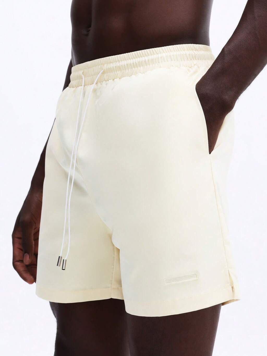 Textured Light Blue Swim Trunks With Drawstring