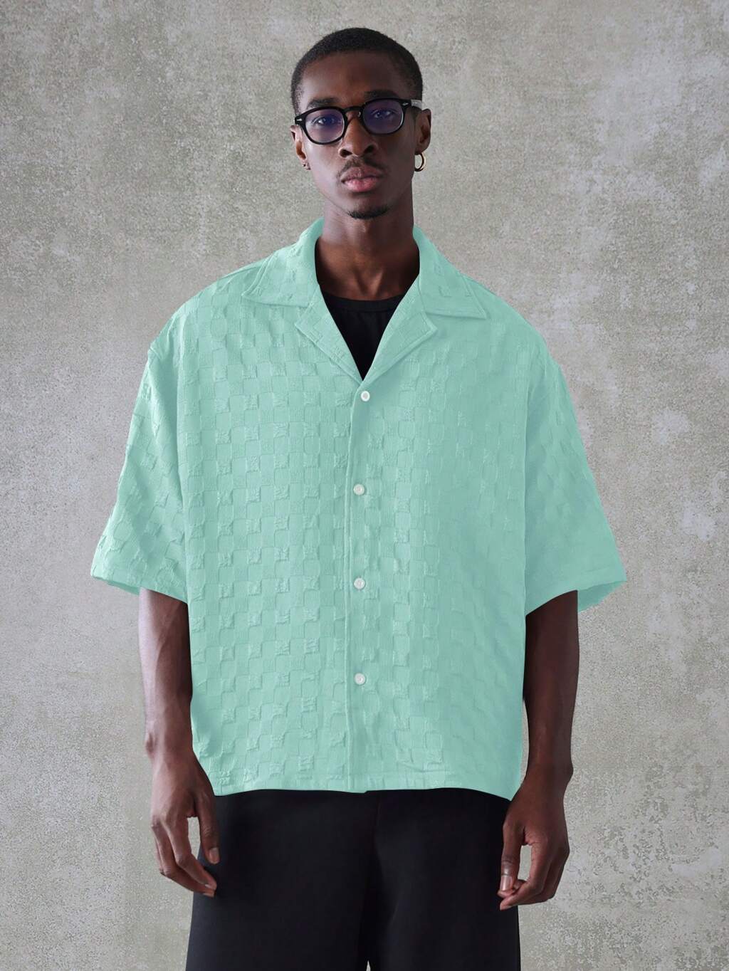 Lightweight Textured Crop Fit Revere Collar Short Sleeve Button Down Shirt