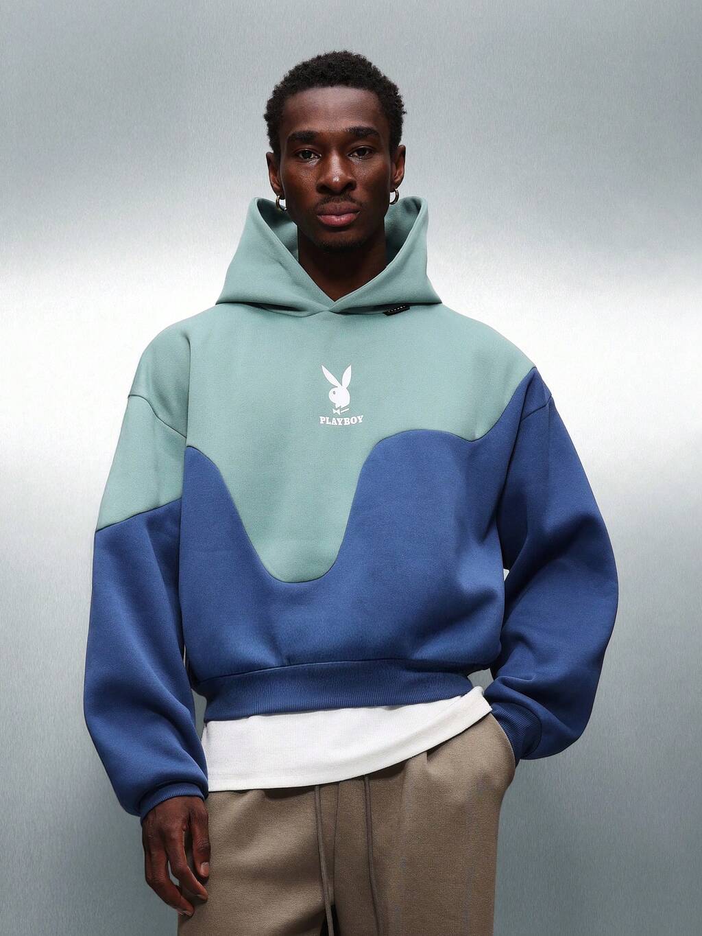 PLAYBOY X SUMWON Oversized Color Block Hoodie With Drawstring