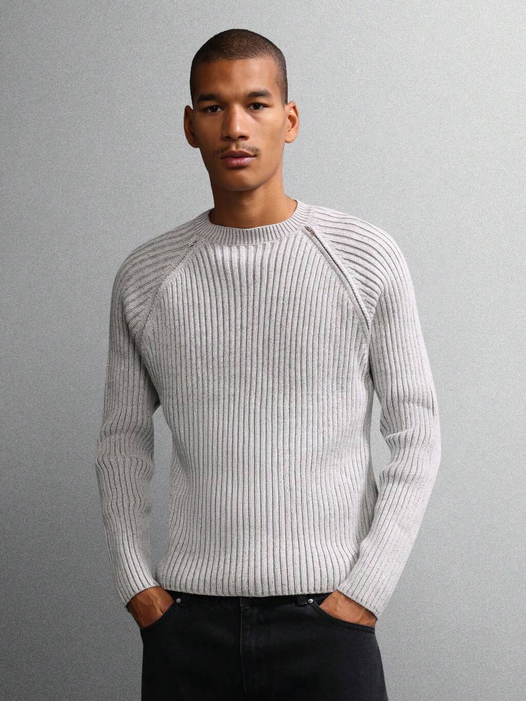 Ribbed Raglan Sleeve Sweater With Shoulder Zip