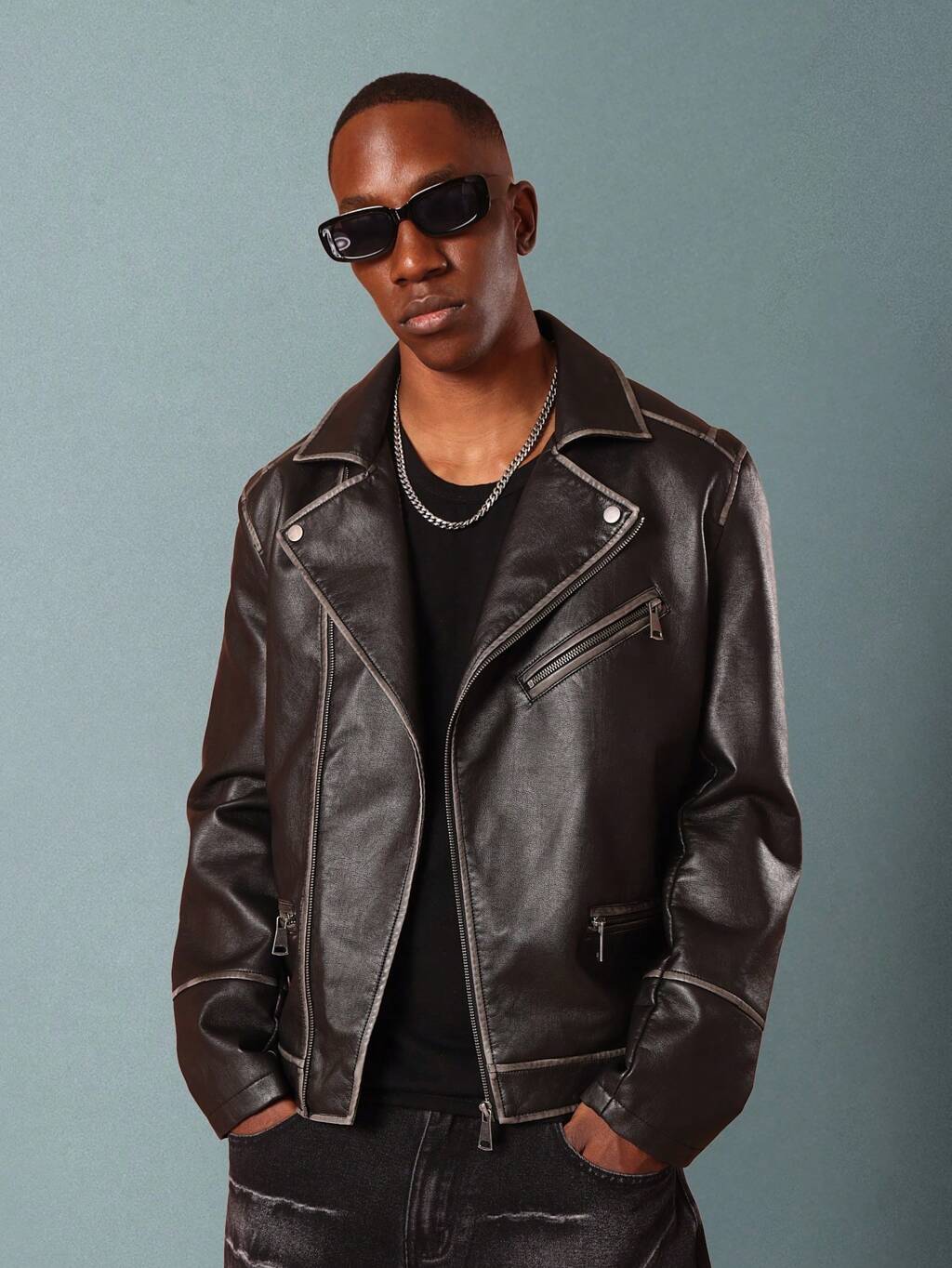 Classic Biker Jacket With Multiple Zippers And Pockets