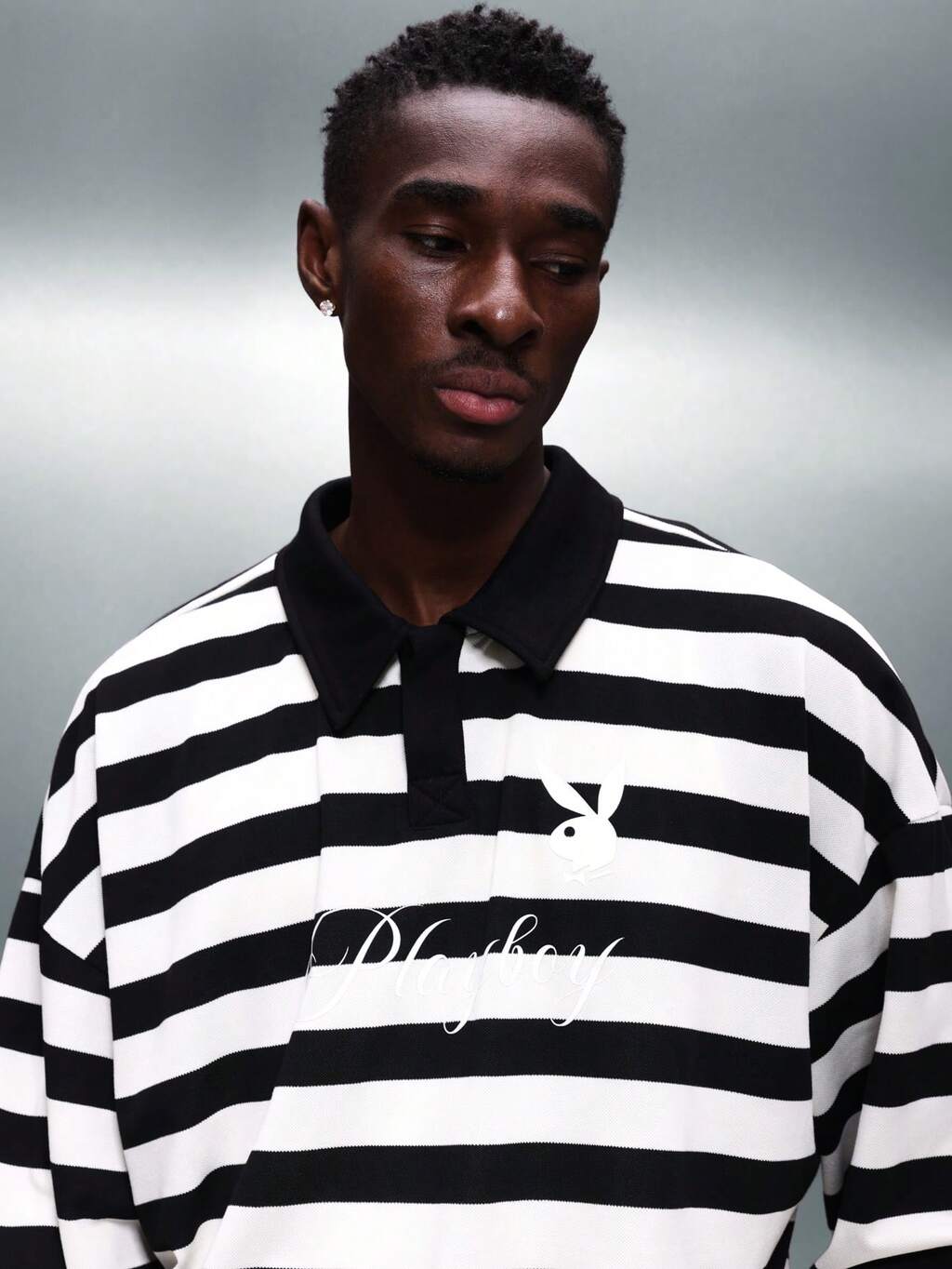 PLAYBOY X SUMWON Striped Long Sleeve Polo With Chest Script