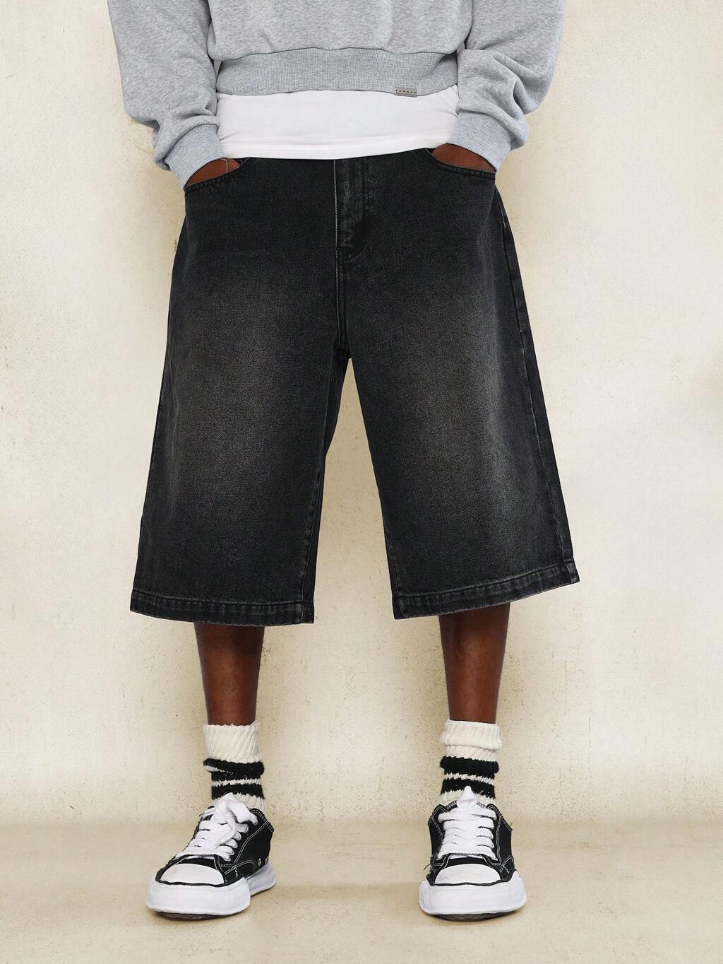 Men Slant Pocket Wide Leg Denim Jort