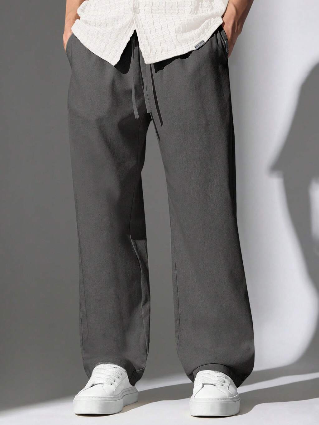 Wide Leg Drawstring Pants With Straight Cut Design