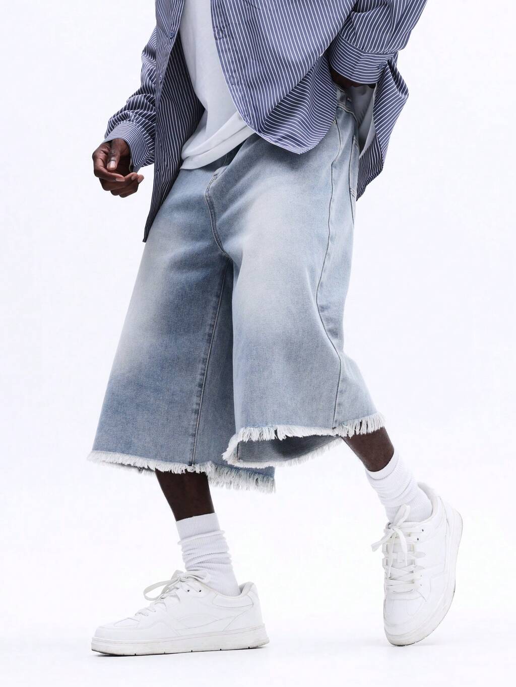 Light Blue Frayed Hem Denim Jorts