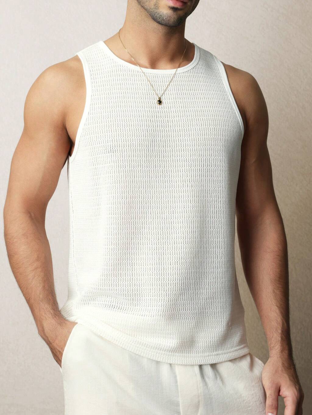 Men's Ribbed Tank Top Sleeveless Crew Neck Summer Casual Undershirt Basic Solid Color Comfortable Fit Everyday Wear