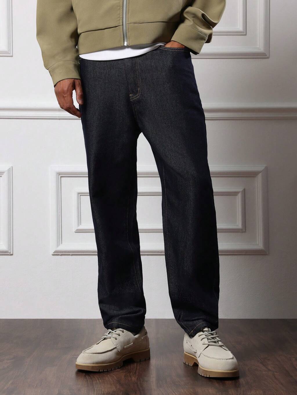 SUMWON Men Classic Straight Leg Dark Wash Denim Jeans With Traditional Five Pocket Design And Regular Fit For Everyday Casual Wear Plain