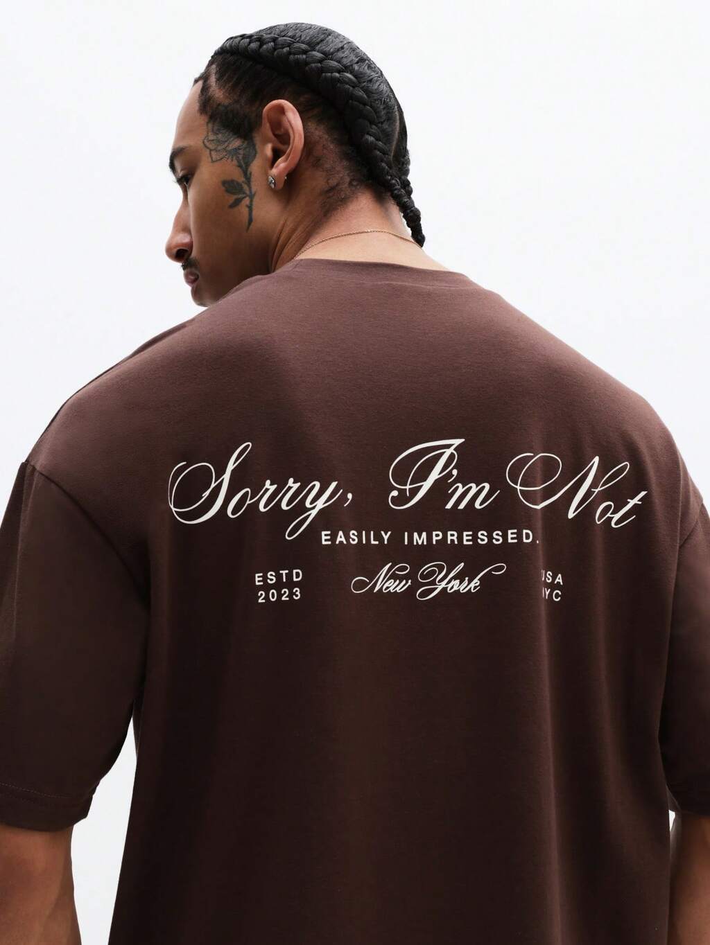 Men's Oversized Crew Neck Short Sleeve Graphic T-Shirt With Sorry I'm Not Easily Impressed Print New York Typography Casual Cotton Tee