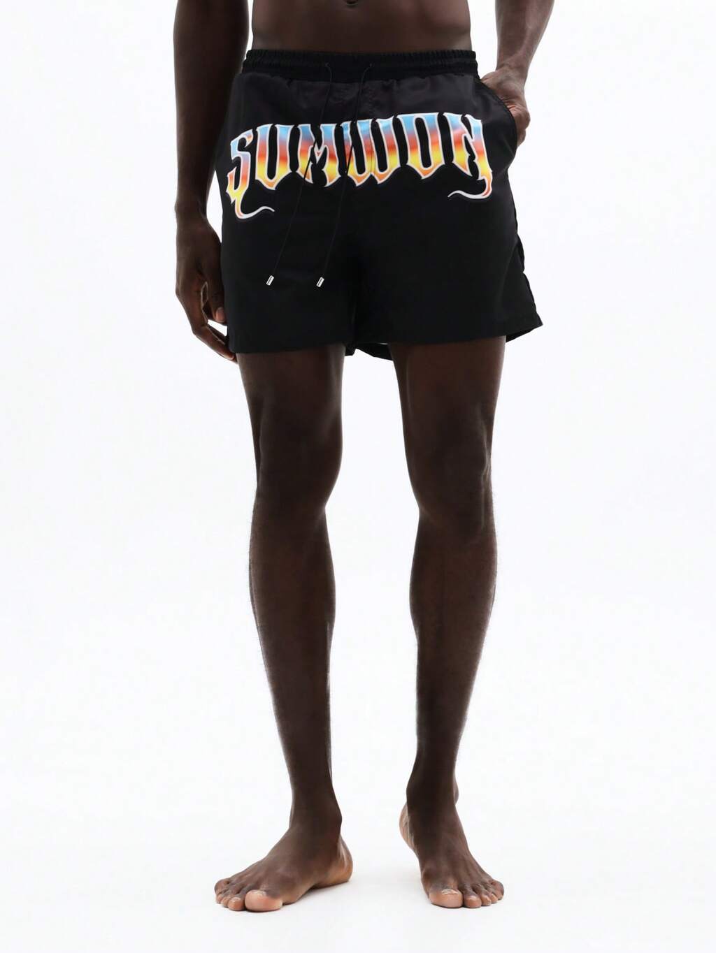 PLAYBOY X SUMWON Men's Essential Drawstring Swim Trunks With Bunny Logo Print Beach Shorts For Summer Swimming And Pool Activities