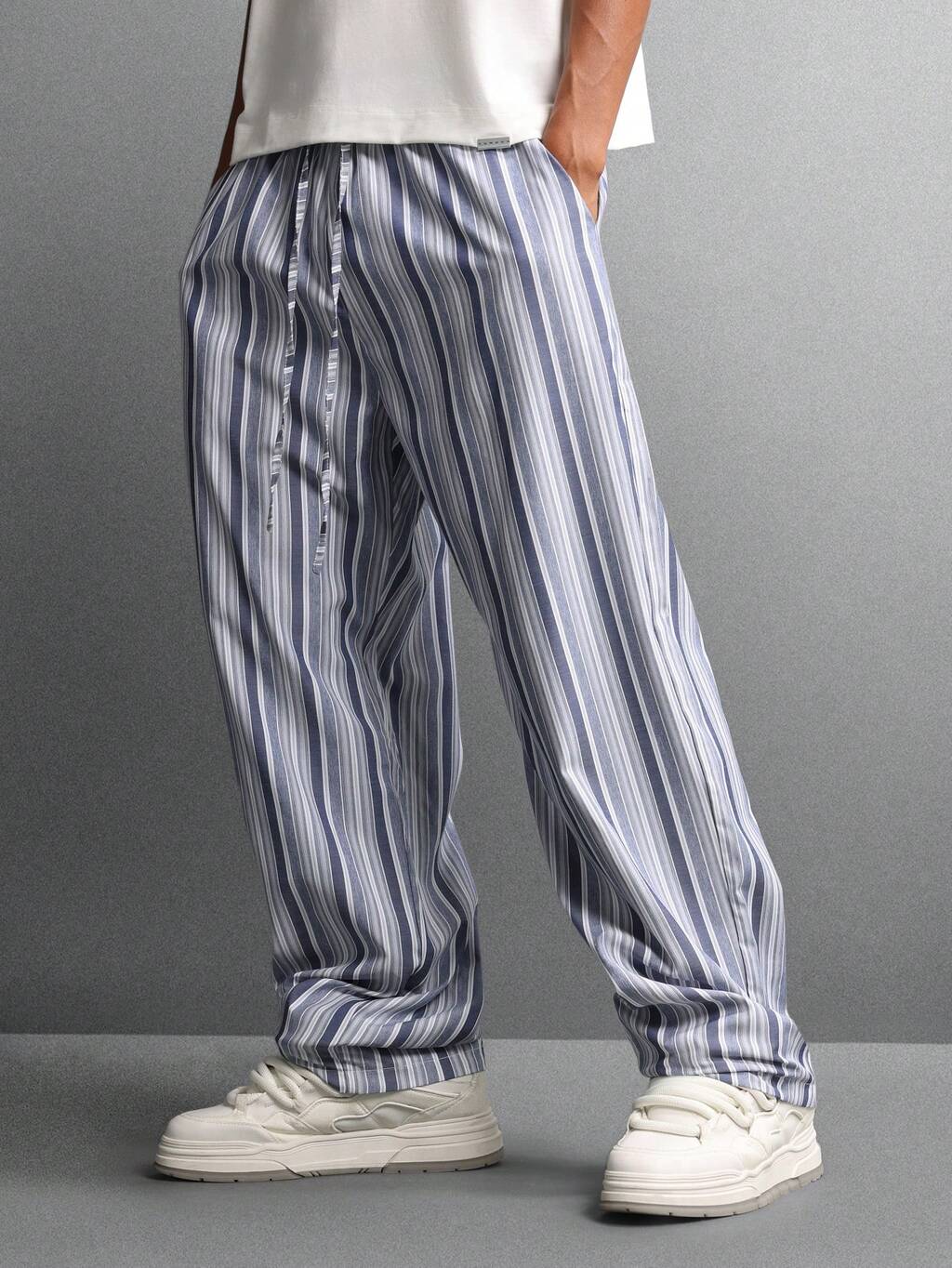Wide Leg Striped Casual Trousers With Elastic Waist