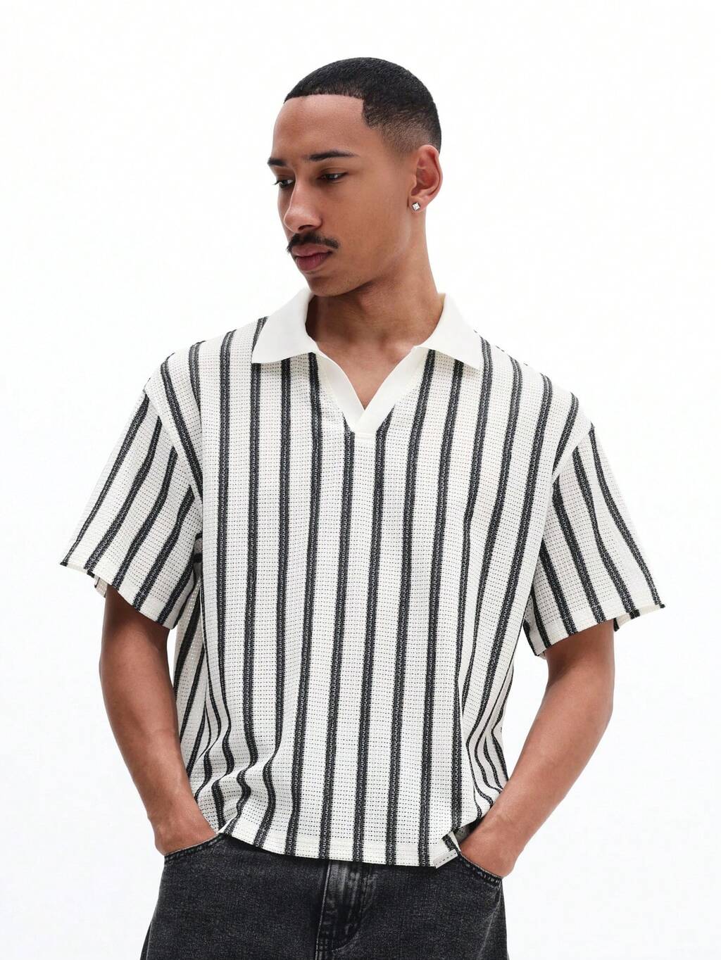 Short Sleeve Ribbed Knit Polo With Collar