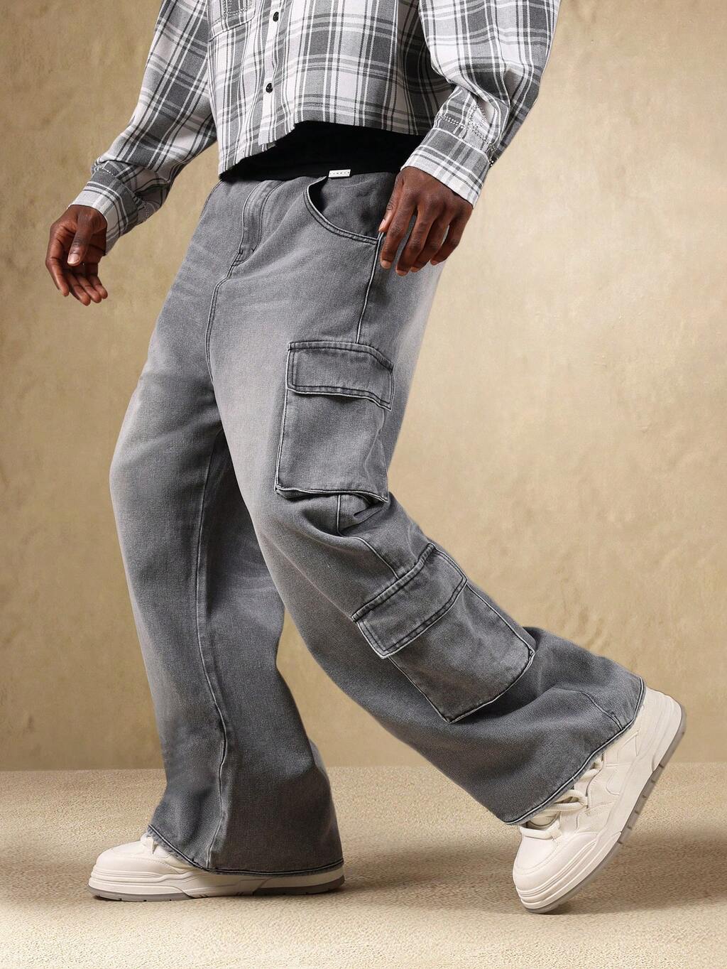 Wide Leg Carpenter Jeans With Utility Pockets And Raw Denim