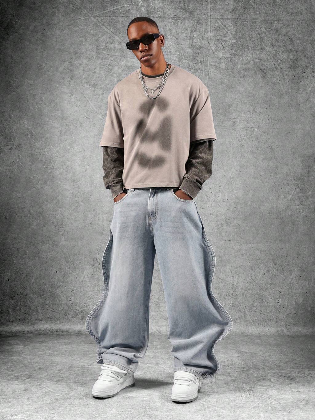 Wide Leg Baggy Skater Jeans With Wavy Design