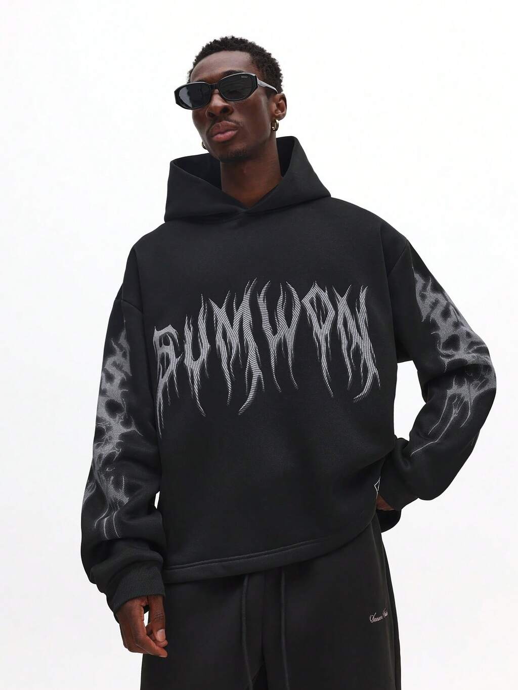 Gothic Flame Text Hoodie With Drawstring