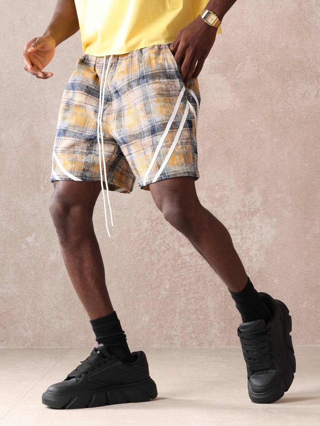Plaid Drawstring Casual Shorts