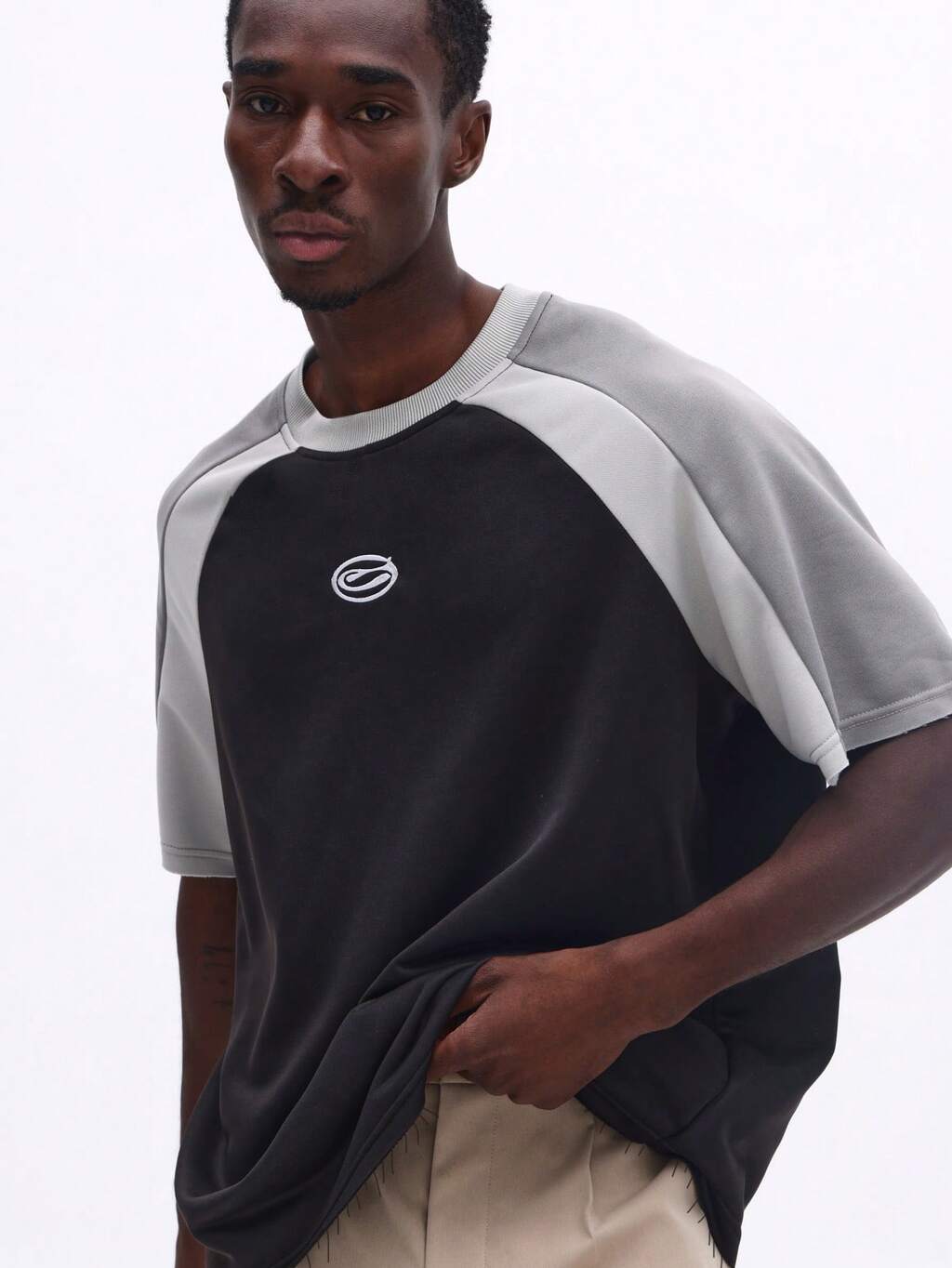 Boxy Colorblock Crew Neck Tee With Logo