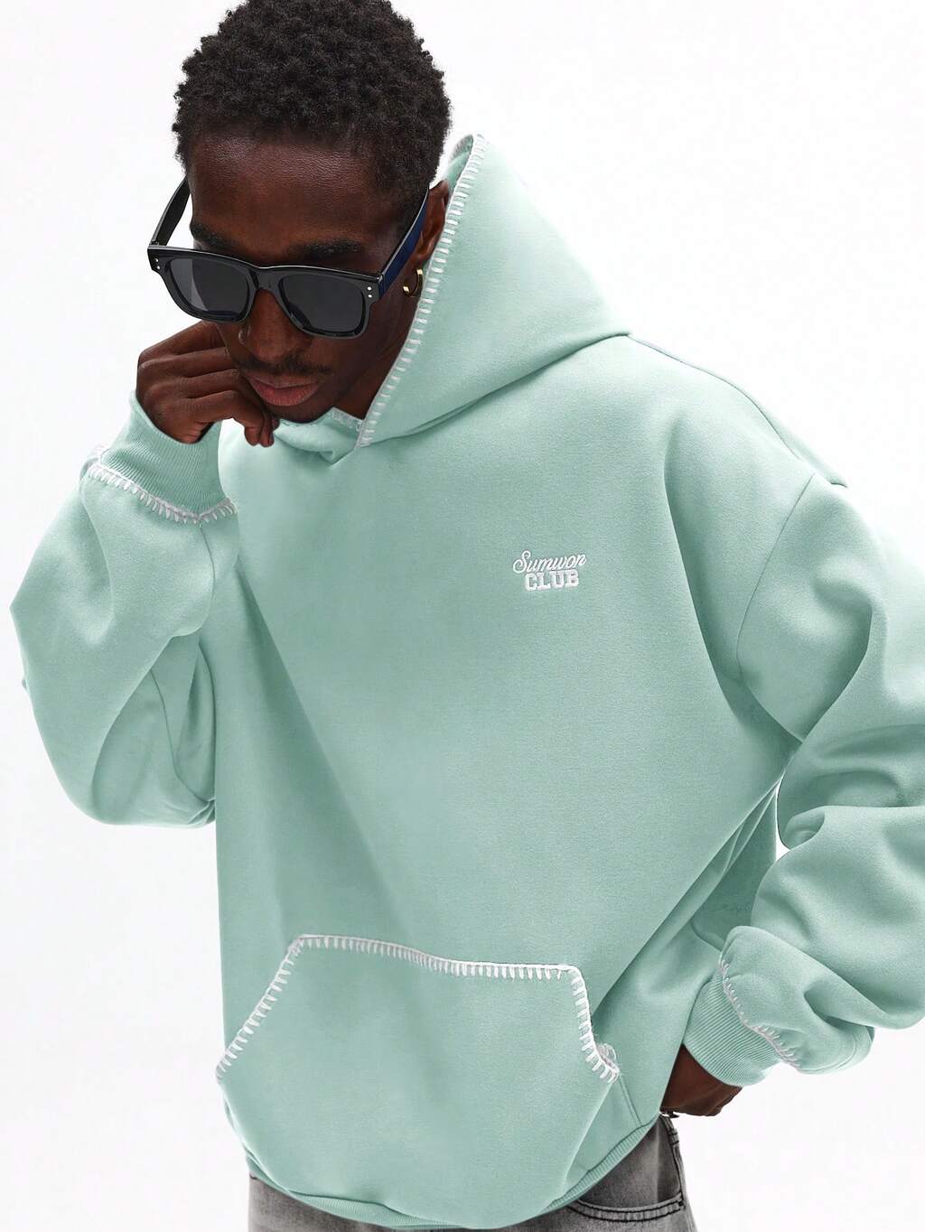 Oversized Hoodie With Contrast Piping Detail