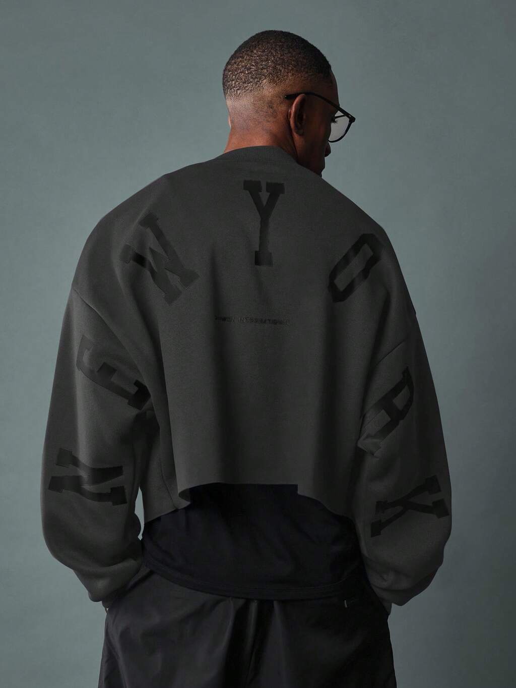Cropped Crew Neck Sweatshirt With Statement Graphic Print