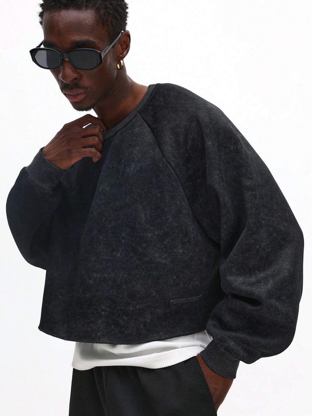 Oversized Crewneck Sweatshirt With Heathered Texture