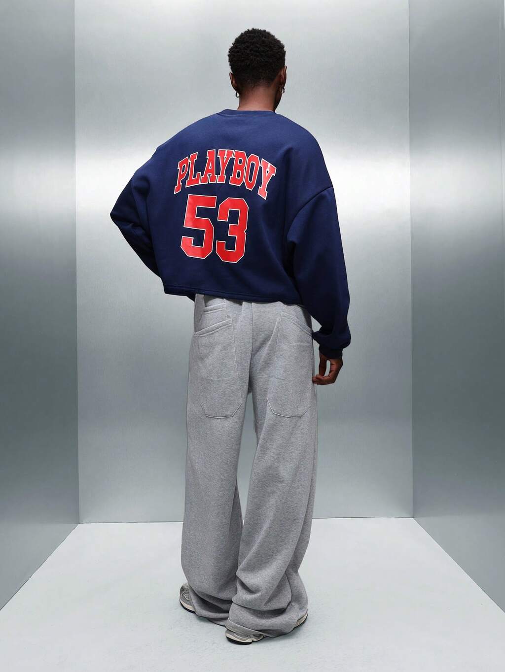 PLAYBOY X SUMWON Crop Fit Grey Sweatshirt With Raw Edge Hem