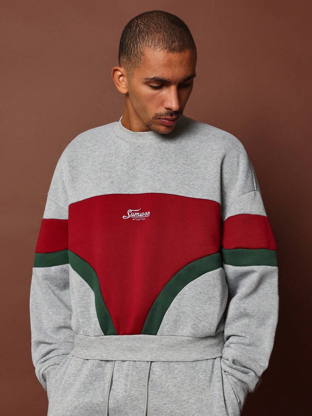Crew Neck Colour Blocked Sweatshirt With Back Brooklyn Embroidery