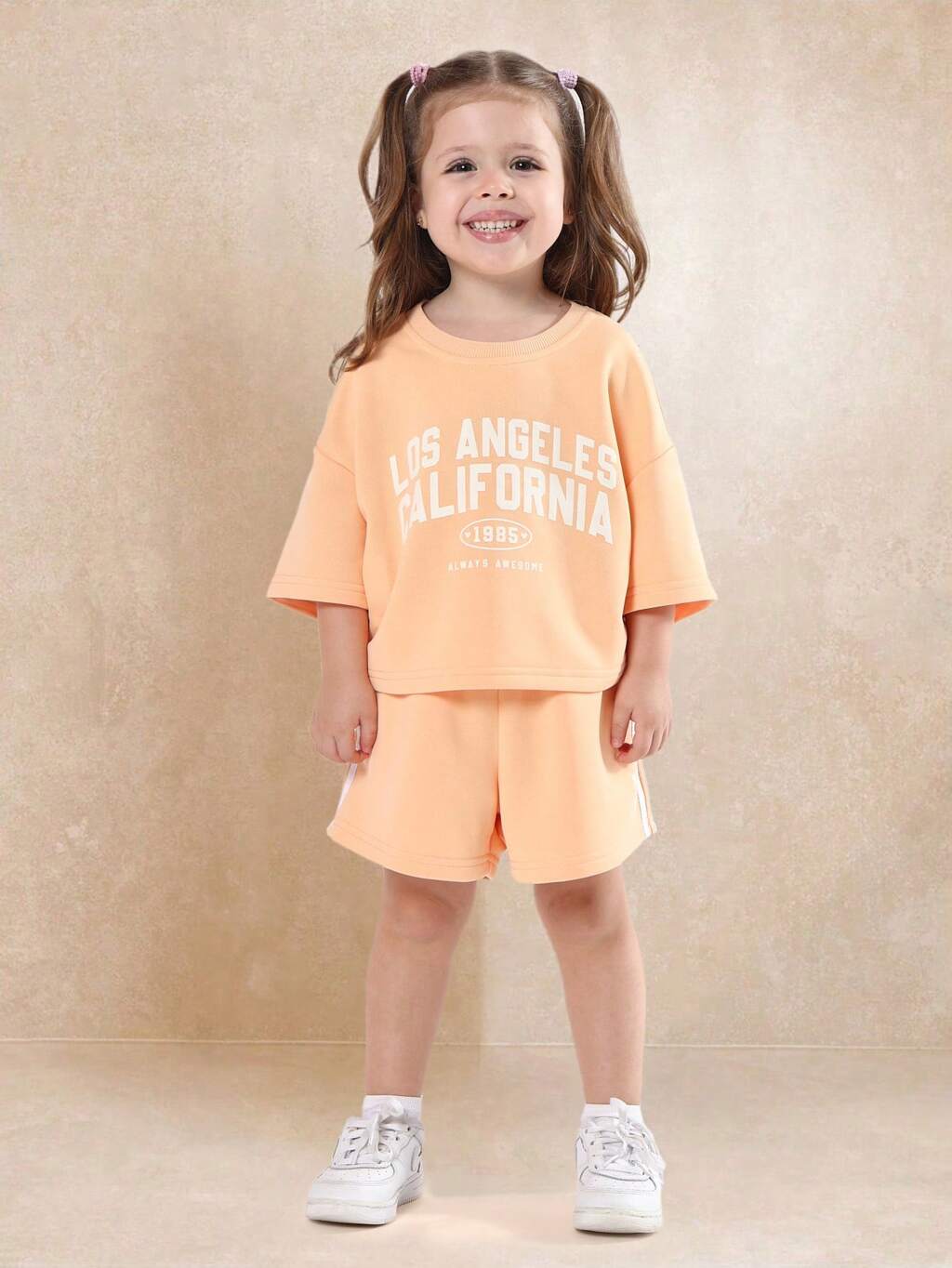 Dwuczęściowy zestaw Young Girls Paris Love Graphic, letni, swobodny, krótki top i szorty