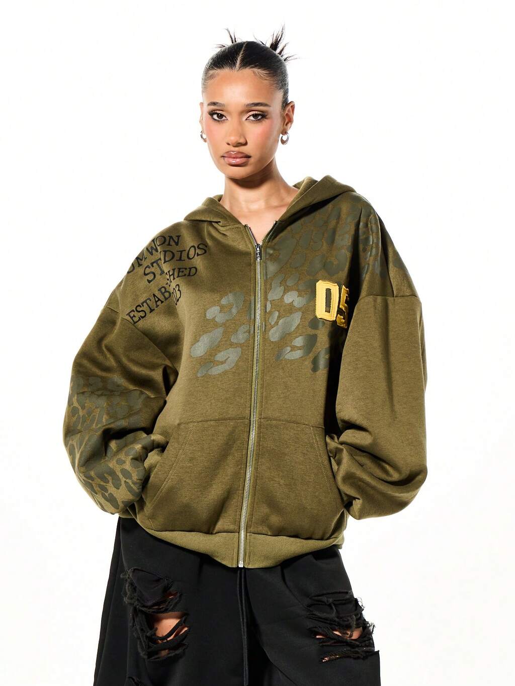 Bluza z kapturem zapinana na suwak i z nadrukiem Savage Mode