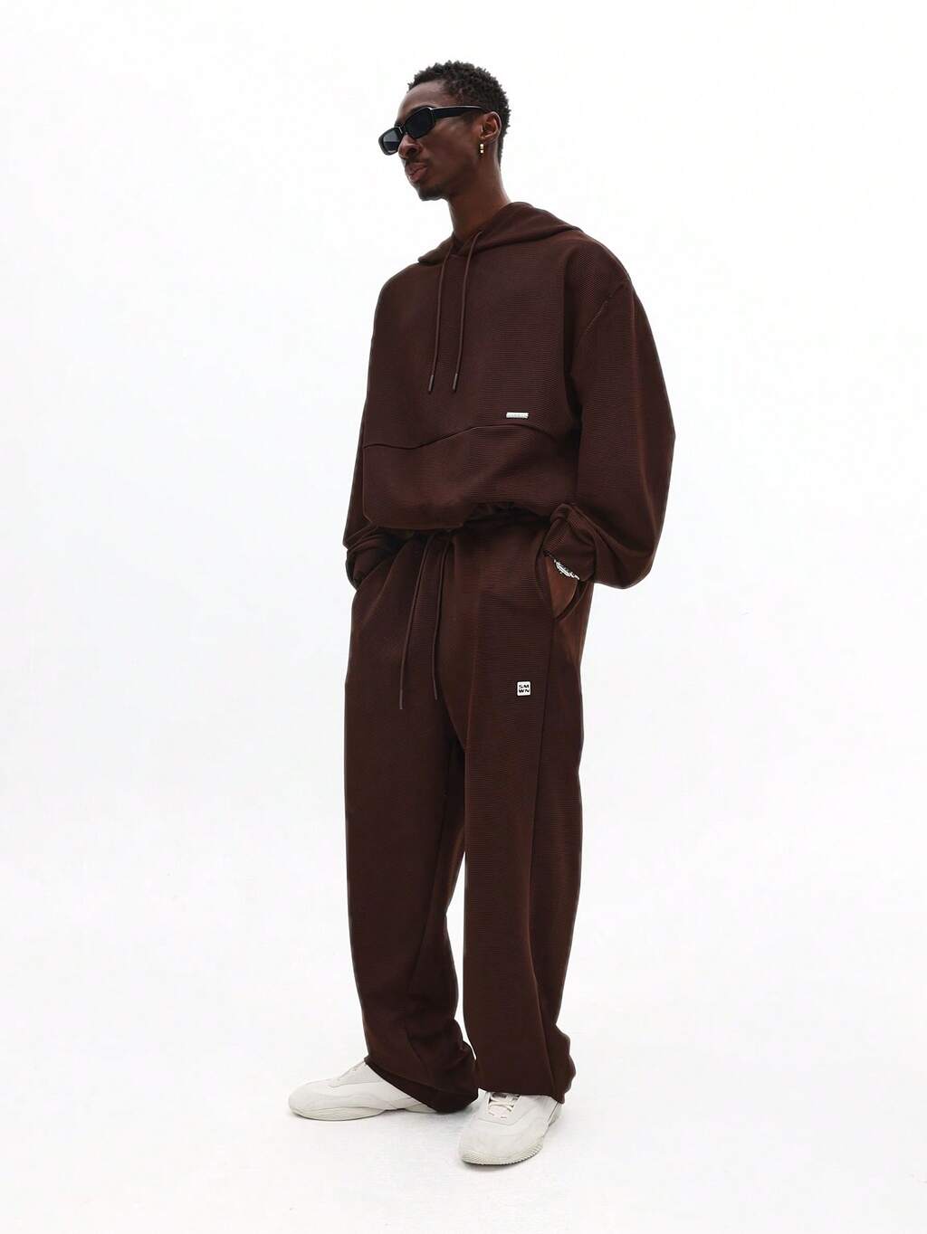 Luźna bluza z kapturem, kieszenią pośrodku i spodniami dresowymi z obniżonym krokiem