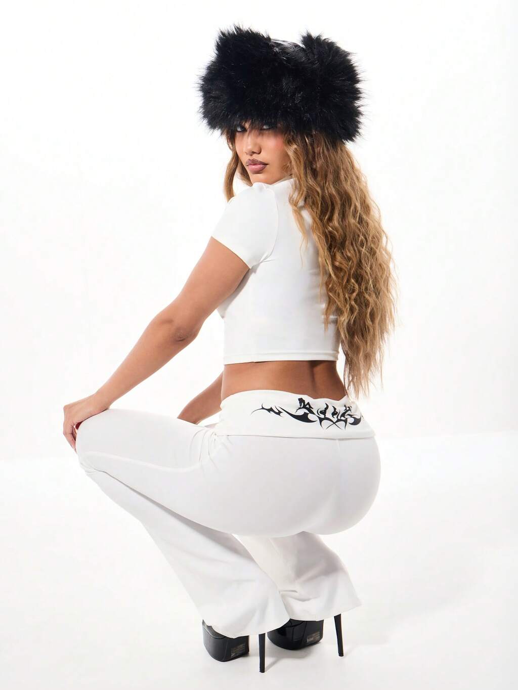 SUMWON WOMEN Spodnie dzwony z wysokim stanem i nadrukiem w gwiazdy