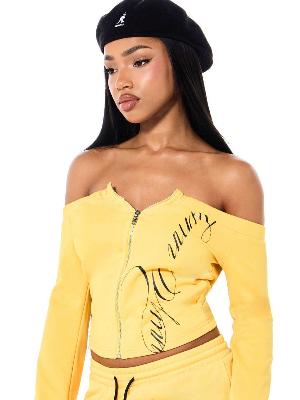 SUMWON WOMEN Luźna koszulka z odkrytymi ramionami i żółtym nadrukiem