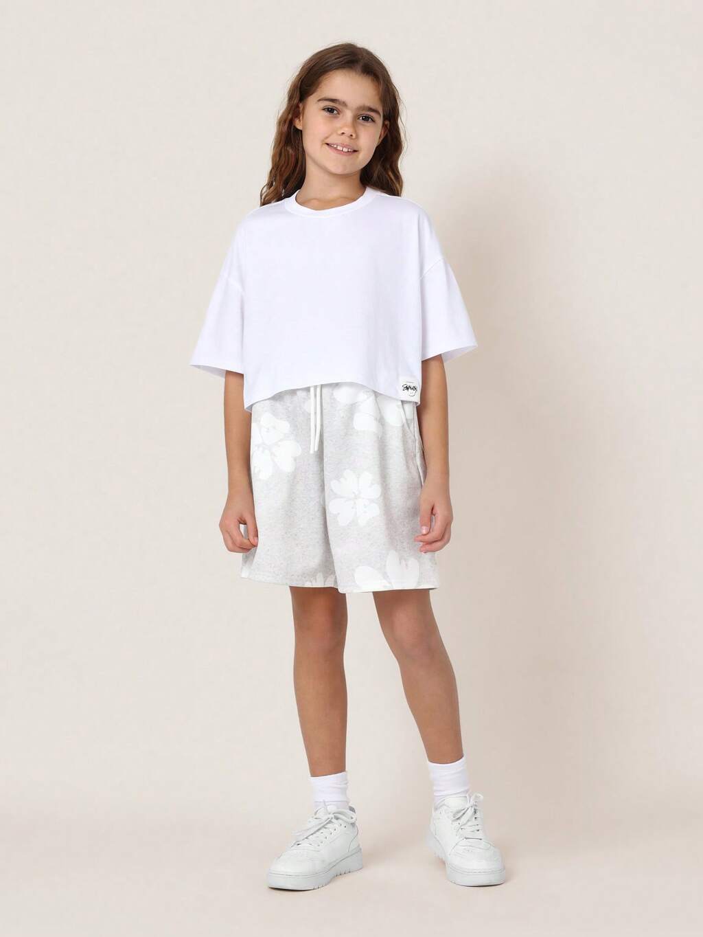 Tween Girls T-shirt oversize z aplikacją w kształcie gwiazdy i krótkim dwuczęściowym zestawem