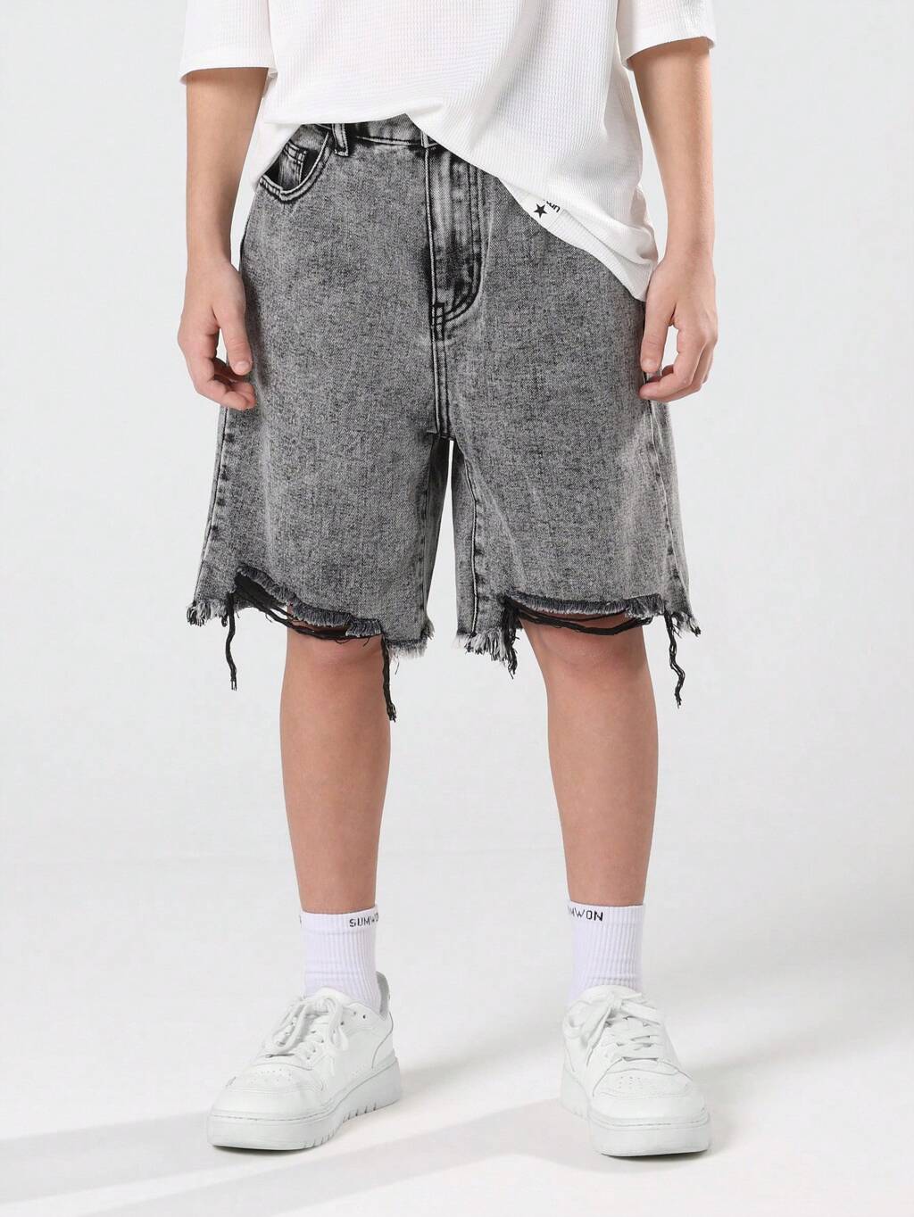 Szerokie dżinsowe szorty z postarzanym, surowym brzegiem
