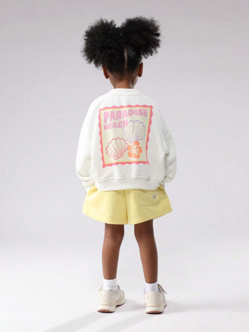 Dziewczęcy zestaw z odkrytymi ramionami, skróconą bluzką i szerokimi spodniami dresowymi, z nadrukiem numeru uniwersyteckiego, dwuczęściowy, swobodny strój uliczny