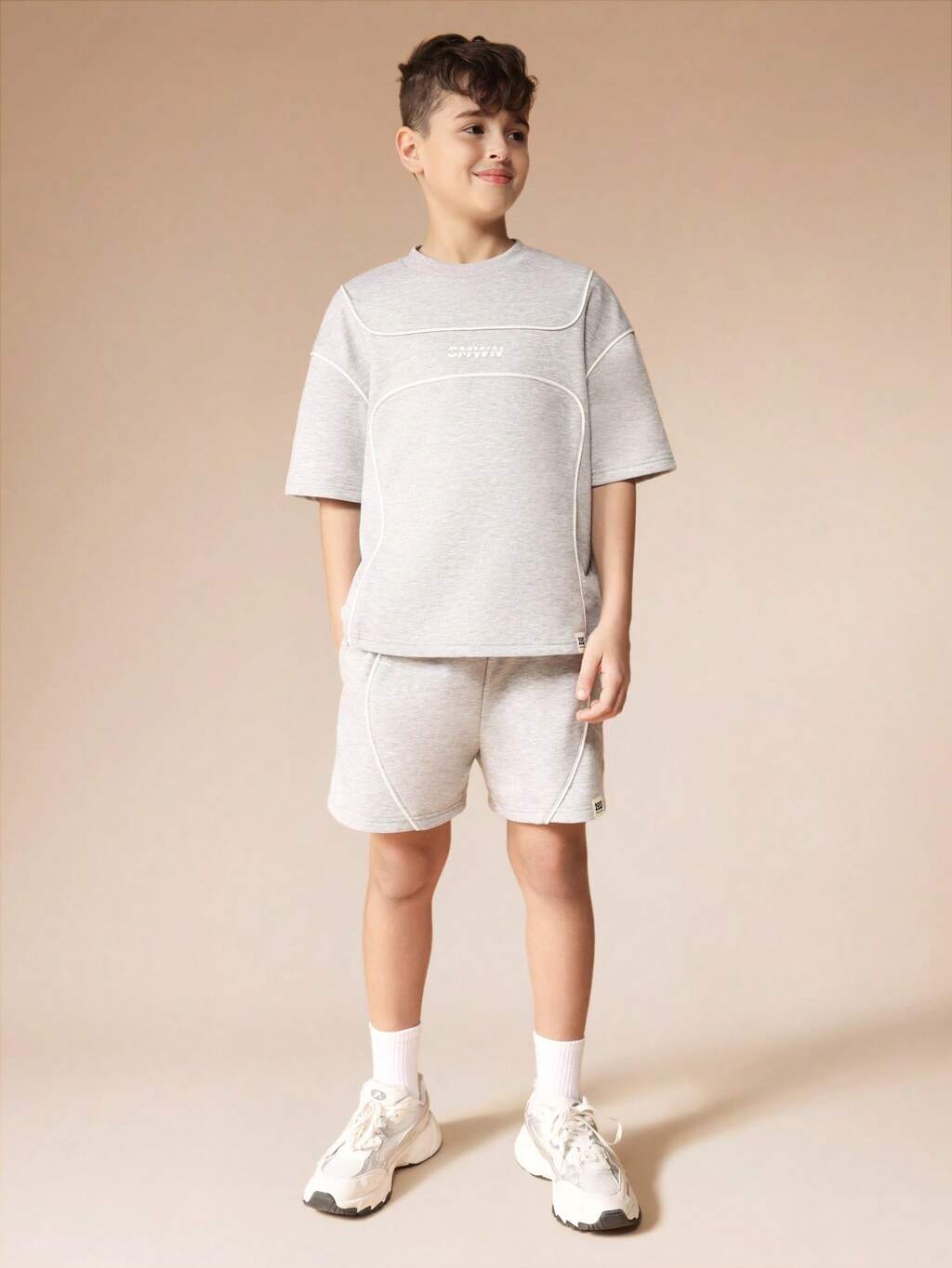Chłopięcy zestaw z luźną koszulką i spodniami dresowymi, letni, swobodny, dwuczęściowy strój w stylu młodzieżowym