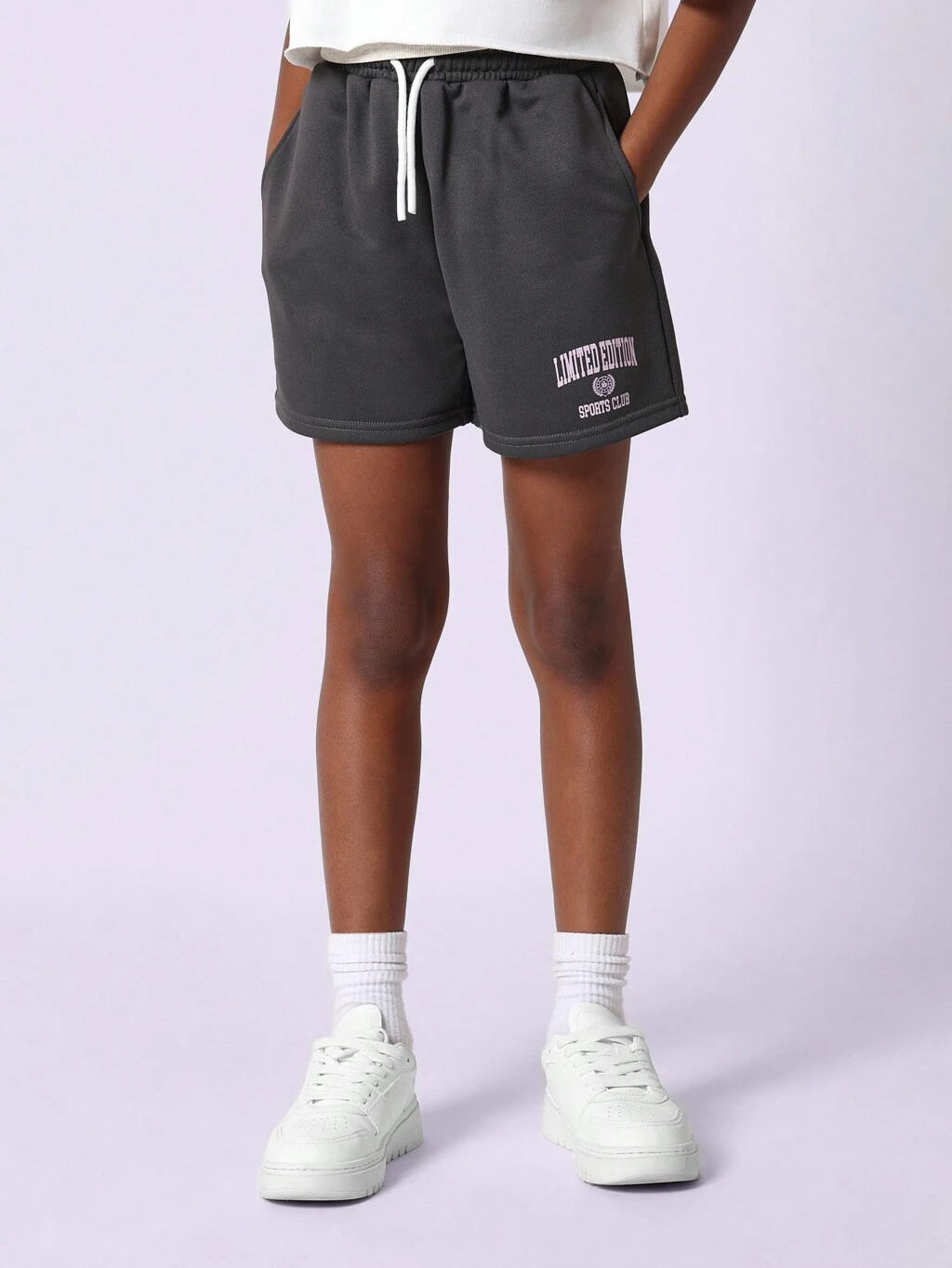 Przytulne spodnie dresowe dla nastolatek z nadrukiem tekstu