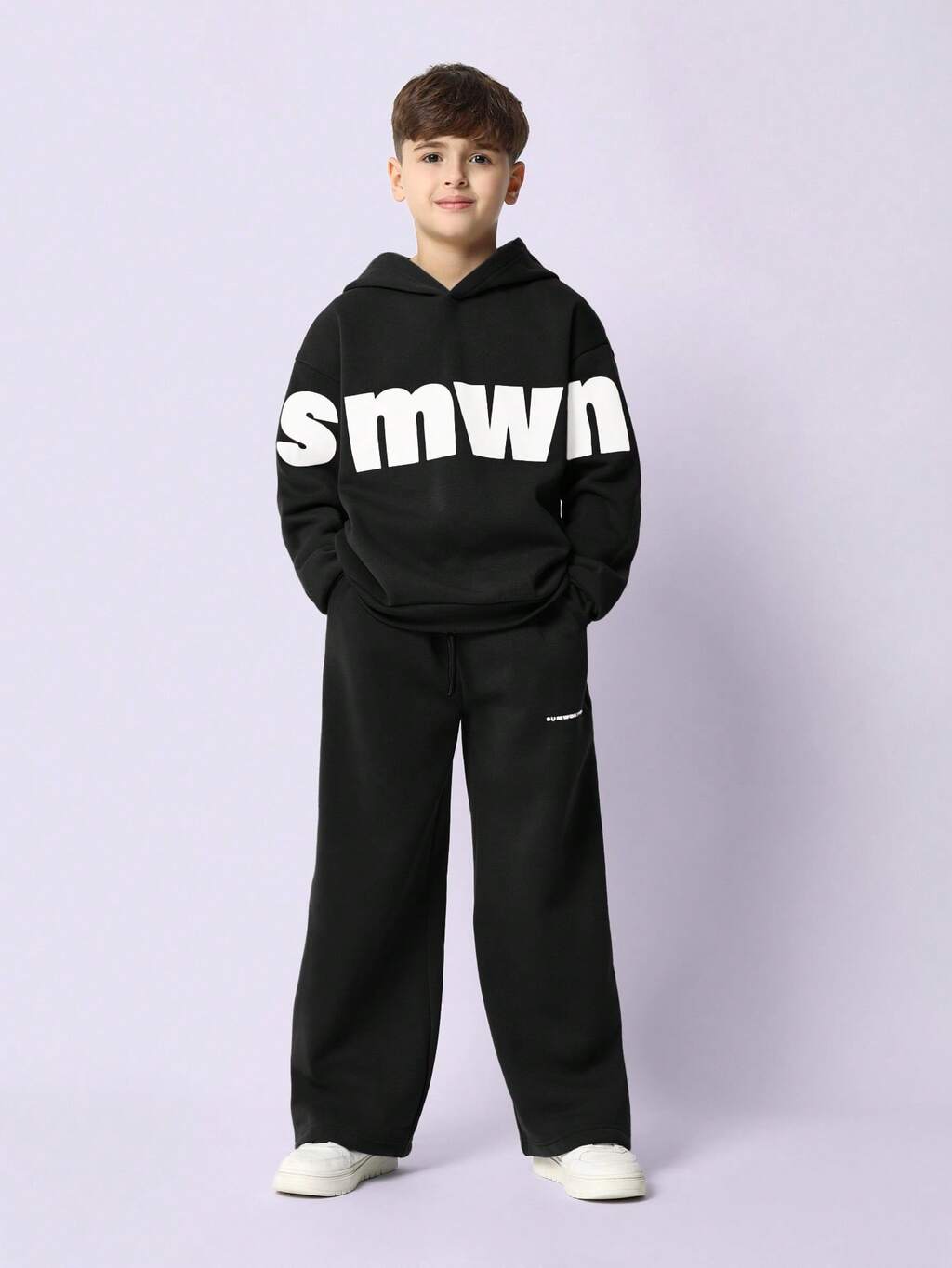 Luźny komplet składający się z bluzy z kapturem i spodni dresowych z kieszenią pośrodku