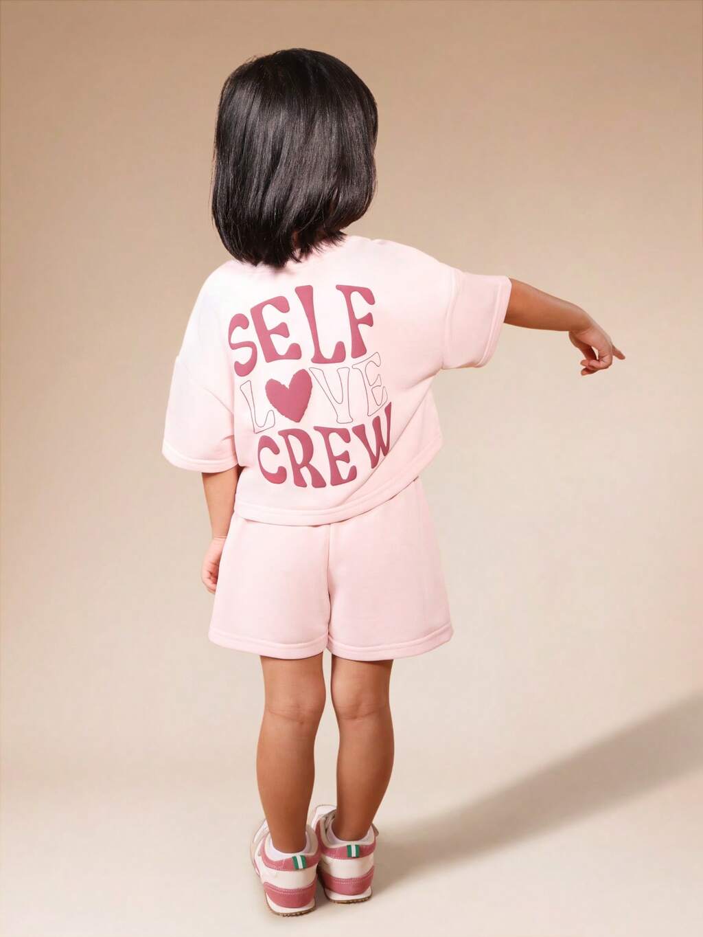 Dziewczęcy różowy T-shirt z nadrukiem Self Love Hearts i szorty, zestaw na lato z grafiką z przodu i z tyłu